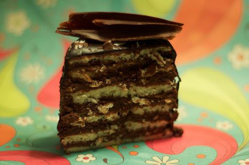 Mindenesetre én elkészítettem a Stefánia torta mini változatát, kicsit megcsavartam egy csillogó tortabevonóval és készítettem rá csokoládé díszeket. Akár azt is mondhatnánk, Stefánia egy távoli rokonát raktam össze.