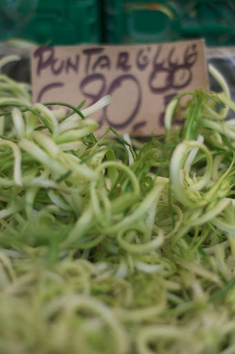 A zöldségek és gyümölcsök széles választéka engem még áprilisban is le tud nyőgözni a mediterrán régiókban. Második vacsoránk alkalmával volt szerencsénk egy cikóriasalátához, ami a pofátlan egyszerűségével vágta fejbe az embert. Ez volt a Puntanelle, avagy római saláta, aminek fő összetevői: puntanelle, olivaolaj, fokhagyma, ecet és szardella. Az említett puntanelle nem más, mint a cikória egy fajtájának friss hajtása. Téli és kora tavaszi vitaminforrás. Kedves, olasz felszólgálónk szerint az idény végét sikerült elcsípnünk, így áprilisban. A göndör, össze-vissza kunkorodó, friss, roppanos hajtások tökéletes hórdozói az egyszerű ízeknek. (Megint előbújt belőlem a botanikus: a cikóriának, vagy másnéven mezei katángkórónak, több igazán ízletes nemesítési fomája is ismert. Ilyen az Észak-Olaszországból erdeztethető radikió, vagy vörös cikória. Úgyanennek a növénynek a gyökerét használták inséges időkben pótkávénak, és a népgyógyászatban jártasak szerint méregtelenítő hatással is rendelkezik.)