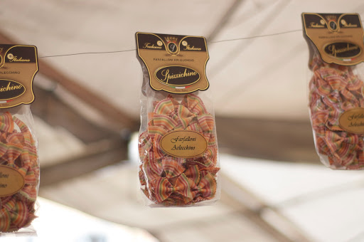 A színes, “szívárvány” tészták vonzák az ember tekintetét, viccesek, azt hiszem. Az olaszok nagyon hisznek benne, hogy ez kell a túristáknak, minden utcasarkon lehet kapni, a pólók mellett is ezek lógnak az ajánképboltok falain. Nyílván, van benne valami és szerethető is a gondolat, én inkább veszek egy csomag jóminőségű Barillát (mint tudjuk, “dove c’e barilla c’e la casa”). Mindenesetre, ha valakit érdekel és római látogatása alkalmával ebből szeretne hazahozni, az egyik legnagyobb színestészta gyár honlapán tájékozódhat a formákról. Az árusok nagyon lelkesen állítják, hogy “colori naturali”, amiben nincs is okom kételkedni, de fő a biztonság és ezt ellenőrizzük, mielőtt megvásároljuk a csinos csomagokat. Általában pirossal, narancssárgával, kékkel, zölddel, feketével és lilával dolgoznak, ezeket valóban egészen egyszerűen elő lehet állítani természetes színezőanyagokkal.