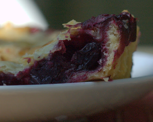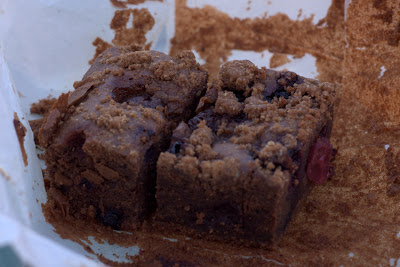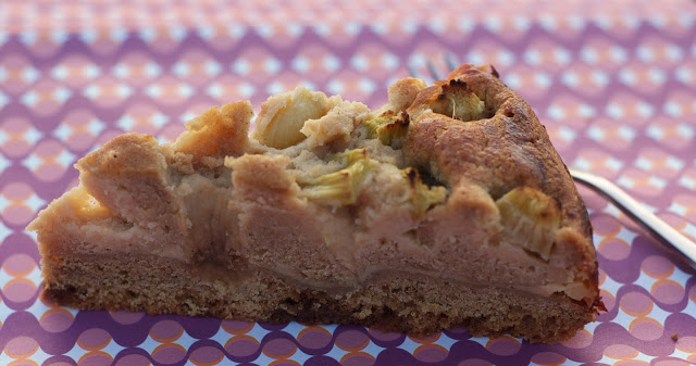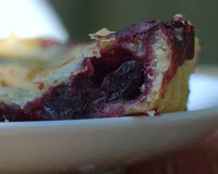 Line the tin with parchment paper. Pour the butter into the bottom of the pan, scatter the fruit on the top of the cake, then sprinkle the streusel over it.
