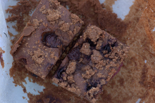 Combine the sugar, almond, cocoa powder, flour in a mixing bowl. Cut the butter into small dice and mix it in using your hand. You should get crumbly texture. Chill for at least 30 minutes.