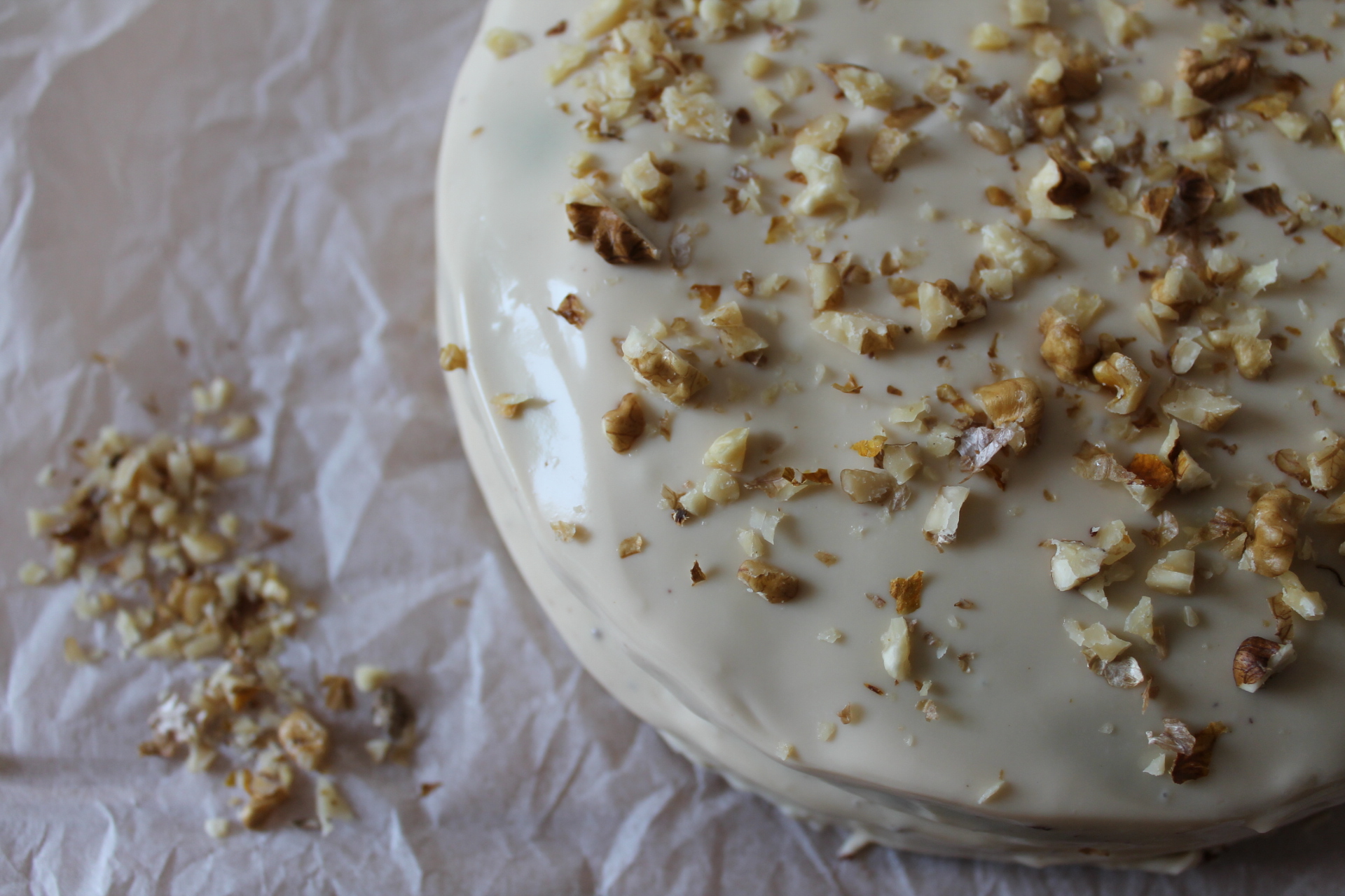 A tisztított vajjal kenjük meg a torta tetejét és szórjuk meg fahéjjas cukorral.