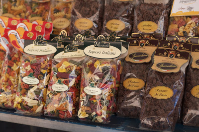 A színes, “szívárvány” tészták vonzák az ember tekintetét, viccesek, azt hiszem. Az olaszok nagyon hisznek benne, hogy ez kell a túristáknak, minden utcasarkon lehet kapni, a pólók mellett is ezek lógnak az ajánképboltok falain. Nyílván, van benne valami és szerethető is a gondolat, én inkább veszek egy csomag jóminőségű Barillát (mint tudjuk, “dove c’e barilla c’e la casa”). Mindenesetre, ha valakit érdekel és római látogatása alkalmával ebből szeretne hazahozni, az egyik legnagyobb